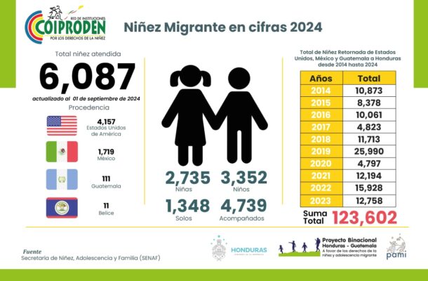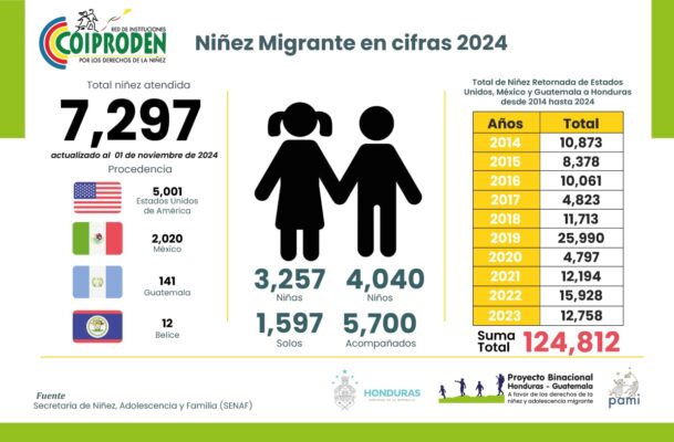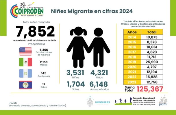 Desde el año 2014 hasta el 3 de diciembre de 2024 unas 125,367 niñas, niños adolescentes y jóvenes han sido retornados a Honduras